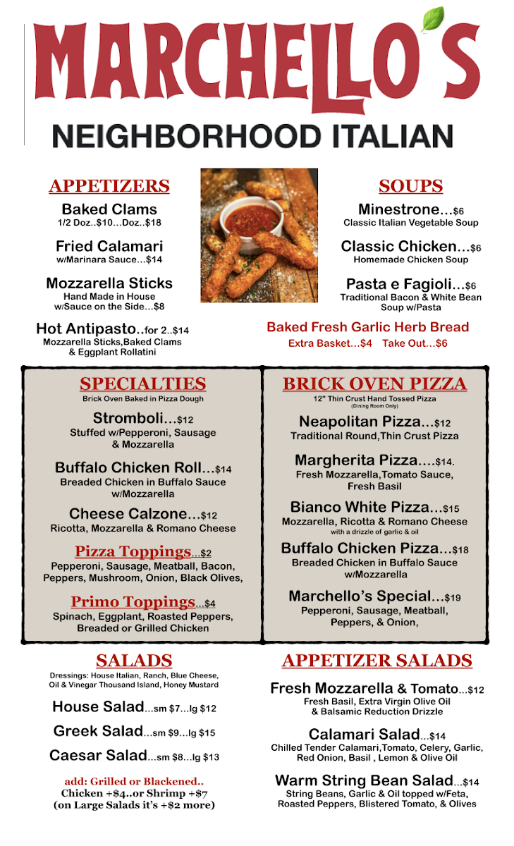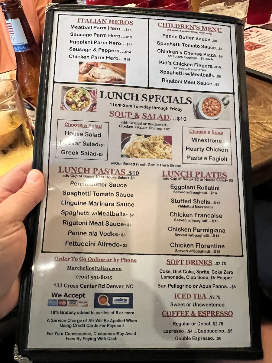 Welcome to Marchellos Neighborhood Italian, a charming eatery nestled in Denver, NC. This family-owned gem offers a menu brimming with classic Italian comfort food that feels like home. Guests rave about the hearty lasagna and stuffed shells, each crafted with care and bursting with flavor. The vibrant atmosphere is complemented by friendly service, making each meal a delightful experience.
